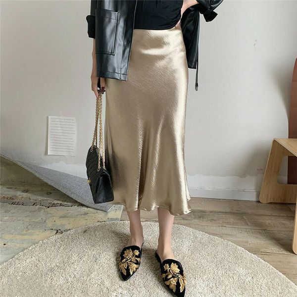 2019 Women Skirt 2019 Ladies Glossy Satin Skirt Plain Shiny Pvc Wet Look Fashion Party Office Skirts Solid Metallic High Waist Skirts From