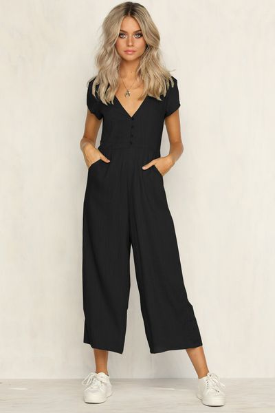 2019 Spring And Autumn New Fashion Casual Jumpsuit For Women Pure Color V Neck Short Sleeve Sexy Jumpsuit Pants Women S Pants From Showready 18 3