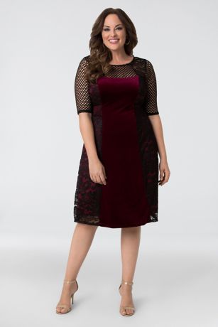 Mixed Lace And Mesh Plus Size Cocktail Dress